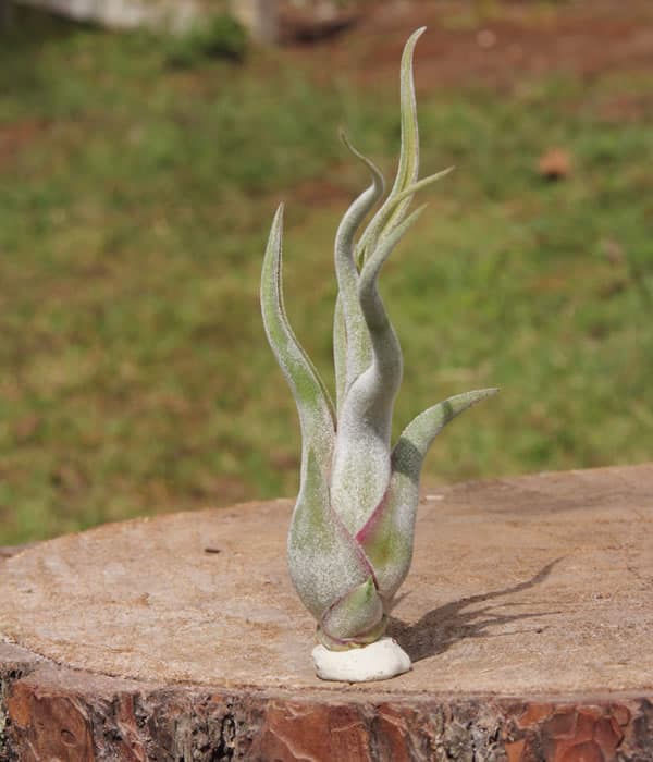 The Tillandsia Caput is a stunning epiphytic plant from the Bromeliaceae family, commonly known as an air plant. It is characterized by its unique appearance, featuring thick, silvery-green leaves that curl and twist elegantly. The leaves are arranged in a rosette formation, creating a visually striking and sculptural effect. The plant is capable of thriving without soil, drawing moisture and nutrients from the air through its specialized trichomes. The Tillandsia Caput produces vibrant, colorful blooms that emerge from the center of the rosette, adding a burst of color to its already captivating form. The delicate flowers exhibit a range of hues, including shades of pink, purple, and blue, further enhancing the plant’s allure. This air plant is a versatile and low-maintenance addition to any indoor or outdoor space, bringing a touch of natural beauty and intrigue to its surroundings.