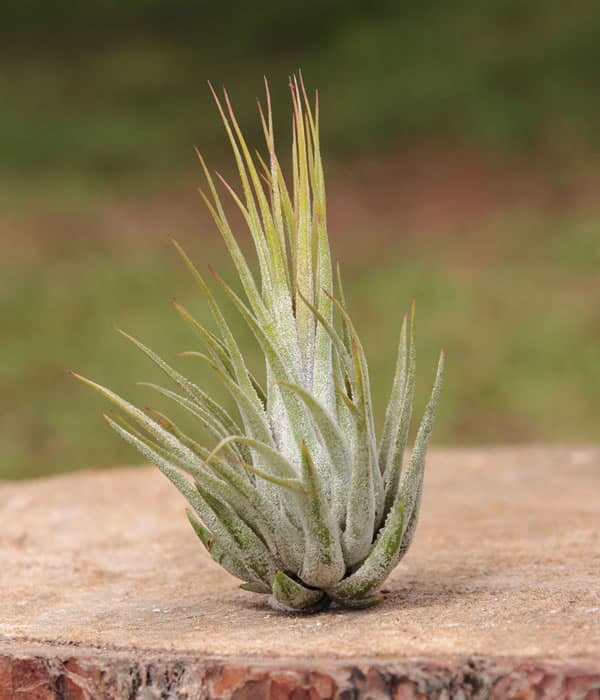 The Tillandsia Ionantha Scaposa is a captivating epiphytic air plant that hails from Central America, particularly Guatemala and southern Mexico. Belonging to the Bromeliaceae family, this remarkable plant is characterized by its slender, silver-green leaves that form a graceful and symmetrical rosette. When in bloom, the leaves undergo a stunning transformation, turning vibrant shades of red or pink, adding a pop of color to its surroundings. The plant is relatively petite, typically reaching a height and width of 2-3 inches, making it an ideal choice for terrariums, living walls, and other indoor garden displays. With its low maintenance requirements and adaptability to various environments, the Tillandsia Ionantha Scaposa is a beloved favorite among air plant enthusiasts.